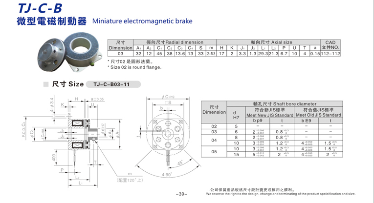 天機傳動微型電磁離合器(小型電磁離合器)是采用進口材料,使其性能更加的穩定、更優越。使用漆包線圈,提高線性度。其型號規格如圖所示: