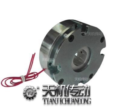 天機傳動廠家生產的電磁斷電剎車器也稱失電制動器,是由磁軛、勵磁線圈、彈簧、制動盤、銜鐵、花鍵套、安裝鏍釘等組成,制動器安裝在設備的法蘭盤(或電動機)的后端伸,傳動軸與花鍵套與制動盤聯結。  勵磁線圈接通額定電壓(DC)時,電磁力吸合銜鐵,使銜鐵與制動盤脫離(釋放),這時傳動軸帶著制動盤正常運轉或啟動,當傳動系統分離或斷電時,制動器也同時斷電,此時彈簧施壓于銜鐵,迫使制動盤與銜鐵及法蘭盤之間產生摩擦力矩,使傳動軸快速停轉。